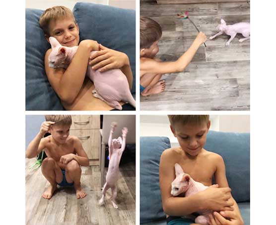 斯芬克斯貓(中國(guó)——烏克蘭)還記得很清楚那是我******次見斯芬克斯貓,被它的外表所震驚,因?yàn)樗男愿褚沧屛覐拇藧凵狭怂狗铱怂关堖洌桨不氐街魅松磉叄銈冮_心讓我很感動(dòng)。